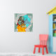 Mädchen mit Regenschirm in Wind Rain Green Swirl Poster. Dieses zeichnend porträtiert ein Mädchen im Wind und Regen, ihr Rücken drehte sich zum Betrachter. Sie hält einen Regenschirm. Das Haar des Mädchens wird im Wind geblasen. Der Hintergrund ist in grünen Farbtönen wirbelhaft.