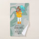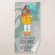 Mädchen mit Regenschirm in Wind Positive Quote Handtuch Set. Dieses zeichnend zeigt ein im Wind stehendes Mädchen, ihr Rücken kehrte zum Betrachter um. Sie hält einen Regenschirm. Das Haar des Mädchens wird im Wind geblasen. Der positive Text sagt "Trage deine Farben auch an den wolkigsten Tagen".