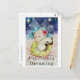 Wasserfarbene gemischte Medien eines schlafenden Mädchens, das sich in der Hand hält und ihr geliebtes Kätzchen. Dieses originelle Design war für ein kleines Mädchen in der Türkei. Die Postkarte reiste 10.656 Meilen in 11 Tagen!