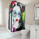 Mädchen mit Zigarette und ungeschliffener farbiger Duschvorhang