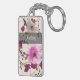 Monogramm-Schlüsselanhänger einschließlich hübsches Blumenvektorkunst-Damastmuster mit Monogramraum, den Sie personifizieren können. Entworfen als persönliches Geschenk oder Gastgeschenk als Schlüsselanhänger für Frauen oder Schlüsselanhänger für Mädchen, in einem Seitenacrylentwurf des Spaßes zwei, der Sie Ihre Schlüssel in der Art tragen lässt.