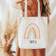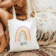 Diese boho Mädchen Tote-Tasche verfügt über eine rosa Aquarell boho Regenbogen, und Raum, um einen Namen in einfachen Typografie hinzuzufügen. Das perfekte moderne und skurrile Design für Kinder oder Regenbogenliebhaber!