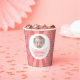 Wunderschöne rosa-weiße Babydusche Papier Cups mit einem Ballon, schön gestaltet, um süße Überraschungen für die Gäste zu halten, die die neue Ankunft feiern.