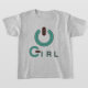Ein aquamarines und braunes Powersymbol (Iec 5009) mit dem Wort "Mädchen" darunterliegend. Der "g" "im Mädchen" wird durch das Powersymbol drehte 90 Grad dargestellt. Mädchen sind Power!
