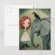 Mädchen und Elefanten und Vögel Postkarte