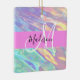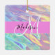 Girly pink, peach und aqua holografisch irisierenden Monogramm Name und erste Keramik Ornament. Individuelle Name und Monogramm sind in einem handgeschriebenen, eleganten Skript mit rosa Hintergrund geschrieben. Ein perfektes Geburtstag- oder Weihnachtsgeschenk!