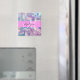 Mädchenrosa, lila und aqua holografische irisierende Monogrammbezeichnung und Initialmagnet. Individuelle Name und Monogramm sind in einem handgeschriebenen, eleganten Skript mit rosa Hintergrund geschrieben. Ein perfektes Geburtstag- oder Weihnachtsgeschenk!