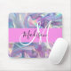 Girly pink, lila und aqua holografische irisierende Monogramm Name und erste Maus-Pad. Individuelle Name und Monogramm sind in einem handgeschriebenen, eleganten Skript mit rosa Hintergrund geschrieben. Ein perfektes Geburtstag- oder Weihnachtsgeschenk!