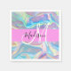 Girly peach, lila und aqua holografische irisierende Monogramm Name und erste Servietten. Individuelle Name und Monogramm sind in einem handgeschriebenen, eleganten Skript mit rosa Hintergrund geschrieben. Ein perfektes Geburtstag- oder Weihnachtsgeschenk!
