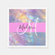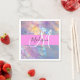 Girly peach, lila und aqua holografische irisierende Monogramm Name und erste Servietten. Individuelle Name und Monogramm sind in einem handgeschriebenen, eleganten Skript mit rosa Hintergrund geschrieben. Ein perfektes Geburtstag- oder Weihnachtsgeschenk!