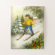Vintages Bild eines Mädchenskifahrens.