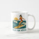 This retro-inspired surf art features a confident, classic pin-up surfing an endless wave beneath the shining sun. "Made For Waves" is written in teal vintage coastal font. Designed with old-school California energy, the distressed look gives it an authentic feel, like it was pulled straight from a vintage surf shop. This fun coffee mug is a perfect way to bring the beach home!