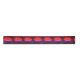Ein Neonzeichen leuchtet mit den Worten "Made in America" in fett rot und blau an einer Ziegelwand