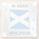 Ein Design mit einem silbernen Imitat-Quadrat, das so gestaltet wurde, als wäre es das Innere, wurde abgeschrägt. In der Mitte des Platzes, ist die schottische Flagge. Um den Platz herum steht der Text "Made in Scotland" zusammen mit 6 dekorativen Sternen.
