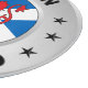 Ein Design mit einem silbernen Imitat-Ring, der so gestaltet wurde, dass er wie das Außen und das Innere aussieht, wurde abgeschrägt. In der Mitte des Ringes, ist die schottische Flagge und der rote Löwe rampant. Um den Ring herum ist der Text "Made in Scotland" zusammen mit 6 dekorativen Sternen.