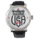 Uhr, Vintage Männeruhr mit schwarzem Lederarmband