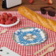 Ein blaues, grünes und gelbes Arabeskemuster mögen gesehen auf Mittelmeerfliesen