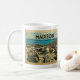 Madison Wisconsin Design im Vintage Travel Stil mit der Skyline von Madison, Wisconsin, Staat Hauptstadt mit Seeblick und blauem Himmel.