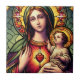 Dieses atemberaubende Keramik Fliesen Kunstwerk vereint eine tief symbolische religiöse Szene mit einer Figur, die ein Kind hält, beide mit goldenen Halos beleuchtet. Das aufwändige Buntglasdesign zeigt lebendige Farbtöne - reiche Blues, Rottöne und leuchtende Gelbtöne - die das heilige und zeitlose Gefühl des Stückes verstärken. Die Kunst spiegelt traditionelle Handwerkskunst wider, mit fein umrissenen Details, die ein Gefühl von Tiefe und Ehrfurcht schaffen. Wenn dieses Design Teil einer größeren Mosaik- oder dekorativen Installation ist, könnte es historische oder spirituelle Bedeutung tragen, die oft in Kirchen, Kapellen oder heiligen Räumen zu sehen ist.
