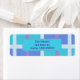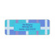 Étiquette moderne rayé/madras dans une belle palette bleue, violet et blanche.