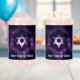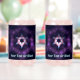 Ein folienartiger, mehrfarbiger Fraktal Star of David auf dunkelblauem Hintergrund. Passen Sie Ihren eigenen Text an.