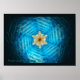 Ein blauer und gelber Fraktal Star of David auf einem dunklen Hintergrund. Fügen Sie Ihren eigenen Text hinzu.