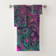 Cette peinture à l'huile numérique originale de My Rubio Garden présente un Motif rétro Abstrait Magenta et Super Bleu Turquoise aux accents violet, rose chaud, noir, chartreuse et vert citron. Le résultat est un tableau coloré, psychédélique, trippé, super que vous adorerez !