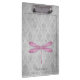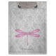 Ziehen Sie Notizen und Erinnerungen auf einer sicheren Oberfläche mit einer Magenta Dragonfly Damask Personalisierte Zwischenablage. Im Clipboard-Design steht eine farbenfrohe Libelle gegenüber einem Vintagen, grauen Damast-Muster. Zusätzliche Geschenkartikel in diesem Design sowie eine Vielzahl von Farben.