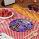 Magenta Lila-blaugelbe Hydrangeas-Blume Pappteller