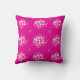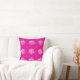 This throw pillow features a vivid magenta background adorned with soft white and blush‑pink circular dot clusters, creating a dynamic, contemporary geometric motif.