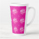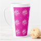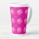 This latte mug features a vivid magenta background decorated with soft white and blush‑pink circular dot clusters, creating a dynamic, contemporary geometric motif.