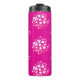 This thermal tumbler features a vivid magenta background adorned with soft white and blush‑pink circular dot clusters, creating a dynamic, contemporary geometric motif.