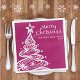 Magenta pink und White Christmas Tree für ein Weihnachtsessen Party Servietten mit einer niedlichen whimsical Spaß Party Einladung für eine festliche Feier.