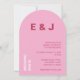 An der Vorderseite dieser modernen Hochzeitseinladungskarte befinden sich Kirschmagenta und weiße Buchstaben auf einem hellrosa Hintergrund. Auf der Rückseite der Karte befindet sich die schlichte Kirschmagenta. Eine schöne Hochzeitseinladungskarte, die einfach online personalisiert werden kann, bevor sie bestellt wird.