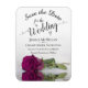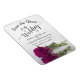 Diese wunderschönen Magnete sind ein guter Weg, um Ihre Freunde und Familie zu lass wissen, um Save the Date für Ihre kommende Hochzeit. Sie zeichnen sich durch ein elegantes Design aus, das mit einer scharfen Schriftzeichen-Kalligraphie und einem Foto eines Single magenta, einer Cassis lila oder einer beerfarbenen Rose in einem Becken mit Wellen und Wellen reflektiert.