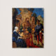 Schönes Kunstbild der Weisen und der Heiligen Familie mit Ruinen im Hintergrund. Ein Gemälde aus dem 15. Jahrhundert von Albrecht Durer.