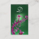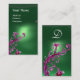 Elegant, skurril, fuchsia, violet.Wirbel, Schnörkel, Blüten und Blüten im Frühling mit einem leuchtenden 3D-smaragdgrünen Edelstein.Original Aquarellmalerei und 3D-Grafik von Baldesign3D (c..).. Leicht mit Ihren Initialen und eigenen Text als allzweckgebundene Visitenkarte zu gestalten, um jedes Geschäft zu machen! .