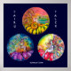 Eine Fee spielt Harfe auf den Sonnenblumen. Akrylmalerei mit goldener und silberner Folie .