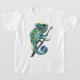 Wasserfarben und Farbtöne eines grünen und blauen Chamäleons auf einem T - Shirt für Kinder