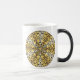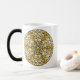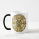 Un mandala en dentelle bleu foncé avec des étoiles bleu et or brillant et un cercle lumineux de dégradé de soleil éclatant derrière fait pour un plaisir, design qui rappelle un ciel nocturne et un jour ensoleillé avec une image. D'autres couleurs et styles de tasses sont disponibles, y compris des tasses de voyage et des steins.