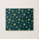 Elegantes nahtloses Weihnachtsmuster, farbenfrohe Sterne und Schneeflocken auf dunkelgrünem Hintergrund
