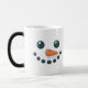 This mysterious Morphing Mug features a Snowman's facial features without the sides, chin and top. The mug is a Morphing Mug that shows an image when you put a hot drink in the mug. The Snowman Features image is on both sides of the mug. The mug is a cute mysterious snowman features Morphing Mug.