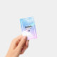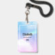 Personalisiertes Abzeichen mit einem weichen und hübschen Hintergrundbild. Pastel Blues und rosa Wolken mit einem magischen Regenbogen.