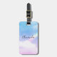 Gepäckanhänger mit einem weichen und hübschen Hintergrund. Pastel Blues und rosa Wolken mit einem magischen Regenbogen.