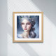 Hübsche Winterkönigin mit verzierter Silberkrone auf Silberhaar - ein Fantasiebild, das mit AI-Rendering-Software erstellt wurde. Gedruckt auf diesem quadratischen Plakat, perfekt für Kinderzimmer.