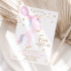 Magical Unicorn 5th Birthday Invitation - Pink & Rainbow Five est une ambiance magique! Célébrez le grand jour de votre petit avec cette invitation amusante et rêveuse à l’anniversaire de la licorne. Doté d'une licorne rose et pastel qui s'élève à l'aide d'une crinière arc-en-ciel, il est parfait pour toute soirée de 5e anniversaire sur le thème de la licorne, de l'arc-en-ciel ou du conte de fées. Personnalisez facilement le nom de votre enfant et les détails de votre fête. Joli, coloré et plein de magie - comme votre fille d'anniversaire !