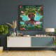 So ein schönes Grafikdesign mit kühnen Farben. Dieses Grafikdesign ist ein phantastisches Kunstwerk, das für jedes Produkt oder jeden Raum geeignet ist. Es zeigt ein Teenagermädchen als eine schwarze afrikanische Fee, mit schönen bunten Flügeln, inmitten eines Feldes aus Blätter, Schmetterlingen und Glühwürmchen. Die kühnen und hellen Farben des grafischen Designs machen es lebendig, während der Kern und die grafischen Gestaltungselemente es auf jedem Produkt großartig aussehen lassen. Dieses grafische Design ist ein absolutes Muss für jeden Kunstliebhaber und wird jeden Raum und jedes Produkt aufheitern.