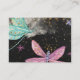 Schwarzer Hintergrund mit dem Zerstreuen der Goldsterne und -punkte über Spitze. Einige bunte Sterne anderswo. Zwei hübsche Libellen - ein aquamarin und ein Rosa. Beide haben funkelnd Gold auf ihren Flügeln. Magisch und Spaß. Text ist auf der Rückseite zusammen mit einer glittery Libelle