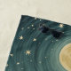 Diese bezaubernde Abbildung erfasst eine magische Nachtszene in einer blühenden Wiese. Ein voller, heller Mond und eine Sprinklerei goldener Sterne, einschließlich eines Halbmondes, erhellen einen wirbelnden, strukturierten aquamarinen und dunkelblauen Himmel. Der Vordergrund ist ein lebendiges Feld von Wildblumen in Rosa, Gelb, Blau und Weiß, mit üppig grünem Gras und sanften Hügeln dahinter. Im Erdgeschoss erstreckt sich ein ruhiger Wald mit dichten, grünen Baumkronen über die Landschaft, der zum Sternenhimmel hin abgestumpft ist. Das Gefühl ist ein Ort des Friedens und des Staunens, wie ein Traum aus einem Märchen.