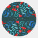 Botanisches Illustrationsmuster mit magischen Blume auf dunklem aquamarinem Hintergrund. Personalisieren Sie diesen Aufkleber mit Ihrem Namen, Ihrer Firma oder allem, was Ihnen gefällt!